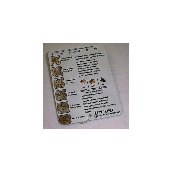 Muestras de arena en tarjeta, para comparaciones rápidas de granulometría.