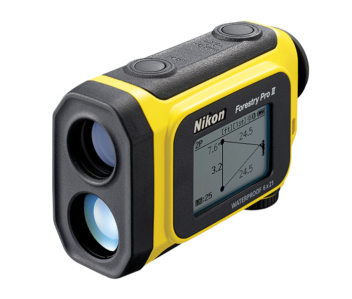 El sistema Priority Target Priority de Forestry PRO II puede detectar y alcanzar objetivos extremadamente pequeños o delgados como líneas eléctricas o ramas pequeñas. La pantalla LCD externa presenta un recuento de píxeles mejorado y retroiluminación ajustable para una visualización más fácil en cualquier condición de luz. Para el trabajo forestal, la medición de dos puntos se puede usar para medir la altura de un árbol cuando la parte superior y la base son visibles. La altura entre los dos puntos se mostrará en el visor y en la pantalla LCD externa. Si la parte superior o la base no es visible, proporciona un modo de tres puntos que calcula la distancia horizontal, luego mide los ángulos hacia la parte superior y la base para calcular la altura. El Forestry PRO II es resistente al agua y viene completo con un estuche de campo, guía de inicio rápido y batería.